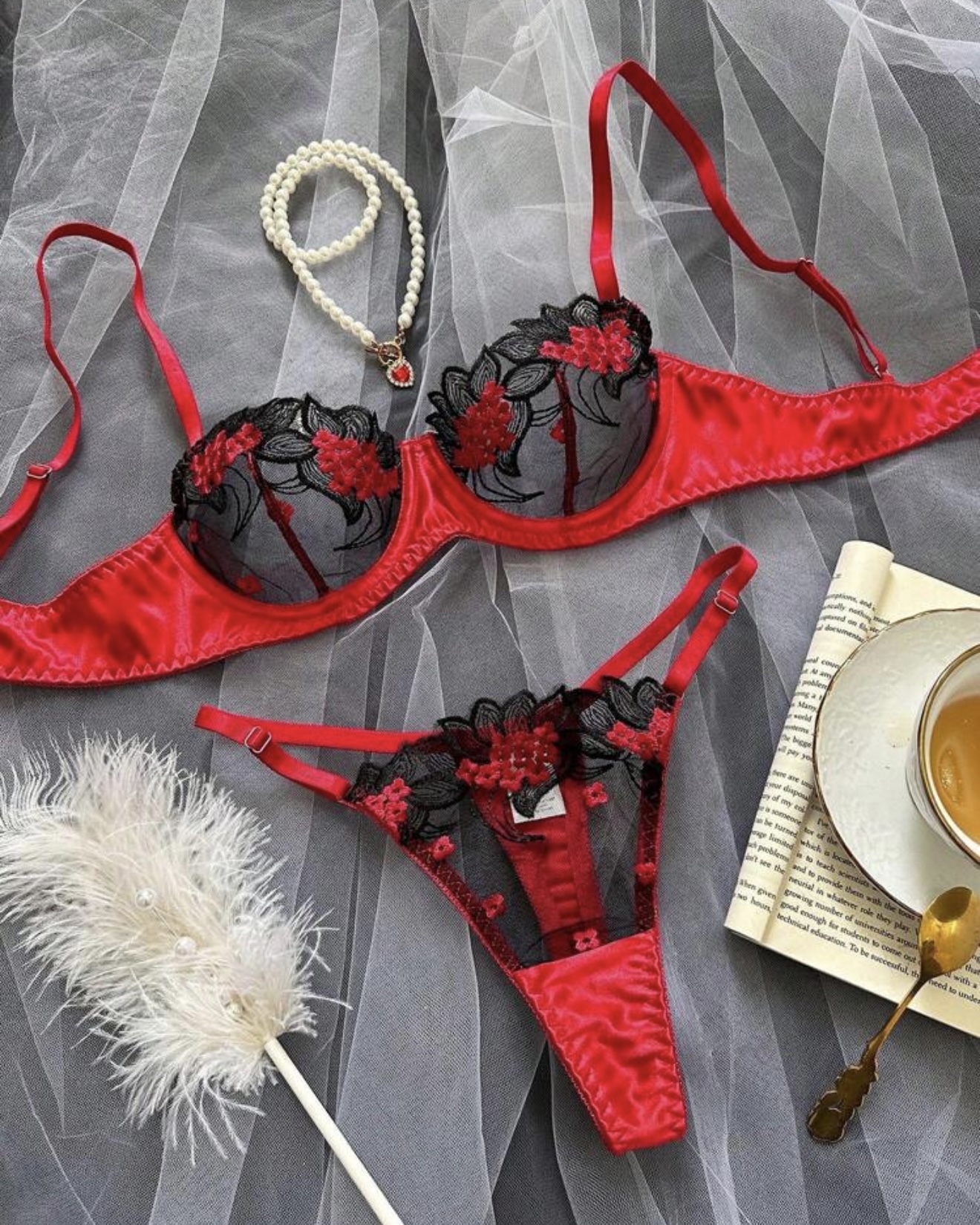 Ensemble Rouge &Noir en Dentelle